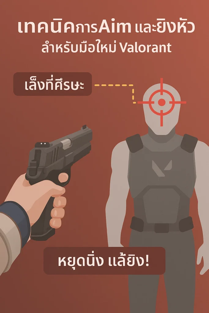 เทคนิคการ Aim และยิงหัว ในเกม FPS อย่าง Valorant การ Aim หรือการเล็งเป้าหมายถือเป็นหัวใจหลักของชัยชนะ เพราะการยิงหัว (Headshot) สามารถสังหารศัตรูได้ภายในกระสุนเพียงไม่กี่นัด โดยเฉพาะปืนอย่าง Vandal หรือ Sheriff ที่ยิงหัวนัดเดียว = ฆ่าได้ทันที